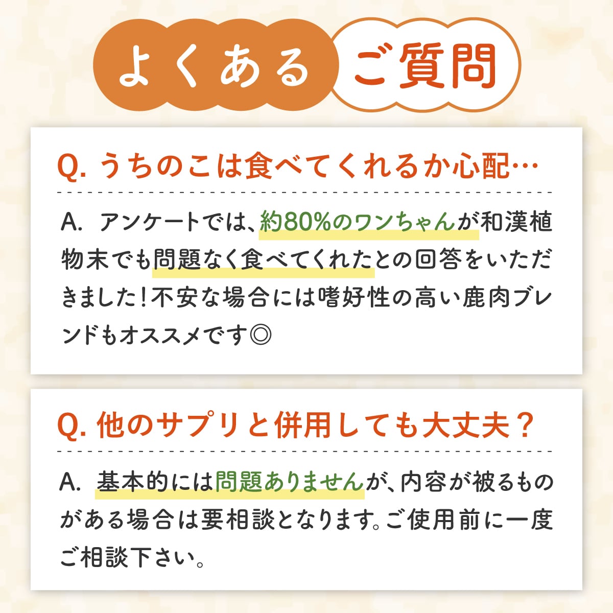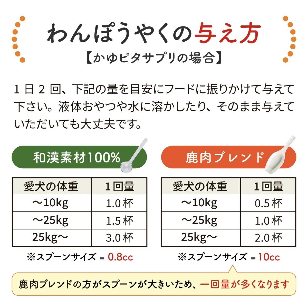 ※サプリメントを初めて与える場合は、少量から始めて様子を見てください。